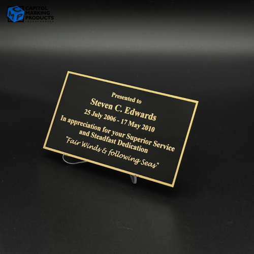 Engraving plates are the perfect way to personalize and complete the look of any award or plaque. We offer a variety of colors, sizes, and styles which can be customized to suit your needs.